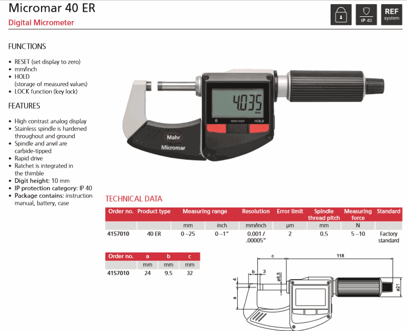 Panme đo ngoài điện tử Mahr 4157010 (40 ER, 0-25mm/0-1")