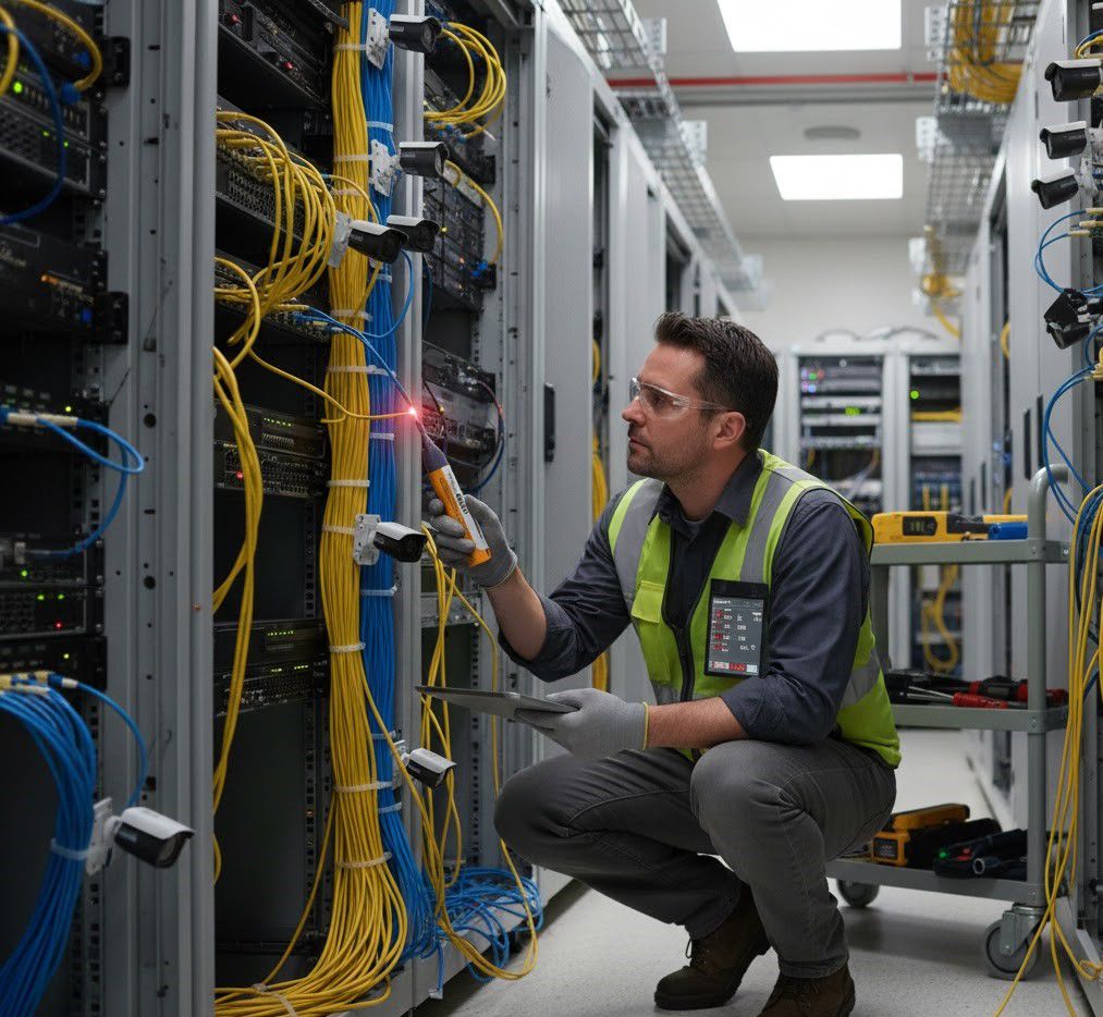 Định kỳ kiểm tra tuyến sợi quang giúp phát hiện suy hao tiềm tàng trước khi nó gây mất sóng camera. Kỹ thuật viên có thể sử dụng FIBERLERT-125 để đo mức sáng định kỳ tại các điểm đầu nối chính. Nếu phát hiện mức trễ hoặc suy giảm rõ ràng, có thể dùng FiberInspector để xem trạng thái bề mặt connector. Dao động tín hiệu quang theo thời gian là dấu hiệu hệ thống cần bảo trì hoặc vệ sinh. Điều này giúp duy trì độ ổn định cho hệ thống camera giám sát, đặc biệt quan trọng trong các ứng dụng giám sát liên tục như nhà máy, kho dữ liệu hoặc tòa nhà văn phòng.
